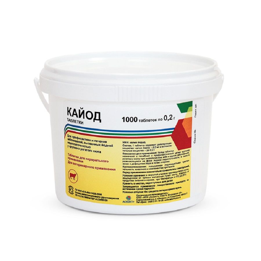 Кайод не содержит свободного йода и поэтому не действует раздражающе на слизистую оболочку желудочно-кишечного тракта. Калий йодид хорошо всасывает и изменяется с образованием йода, при этом йодиды резорбтивно действуют так же, как и йод. Йод участвует в обмене веществ в организме животных как составляющая часть гормона щитовидной железы, способствует ферментообразованию, поддерживает защитные реакции организма, ускоряет образование новых клеток, благоприятно влияет на развитие плода. Использование препарата способствует профилактике и лечению энзоотического зоба и других заболеваний, связанных с недостатком йода, что ведет к повышению продуктивности и сохранности животных.