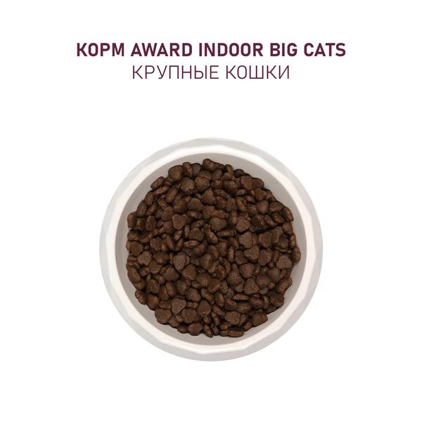 Сухой корм AWARD Indoor Big cats для взрослых домашних кошек крупных пород с говядиной и курицей с добавлением брокколи и юкки Шидигера 1,5 кг.