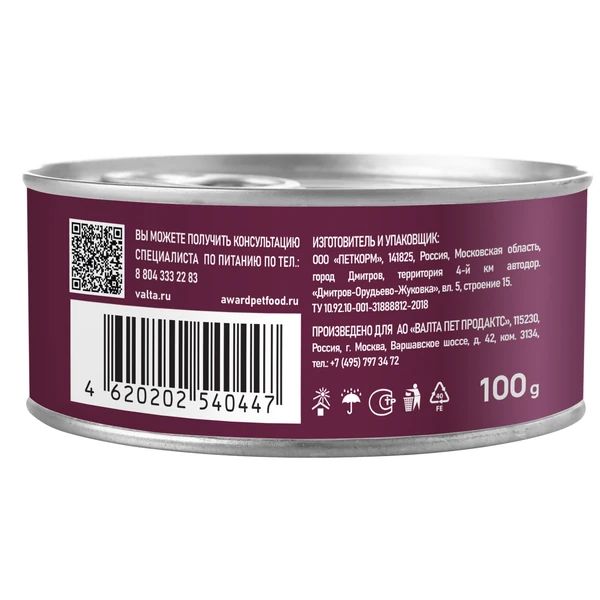Влажный корм AWARD для котят, паштет из курицы с морковью 100г.