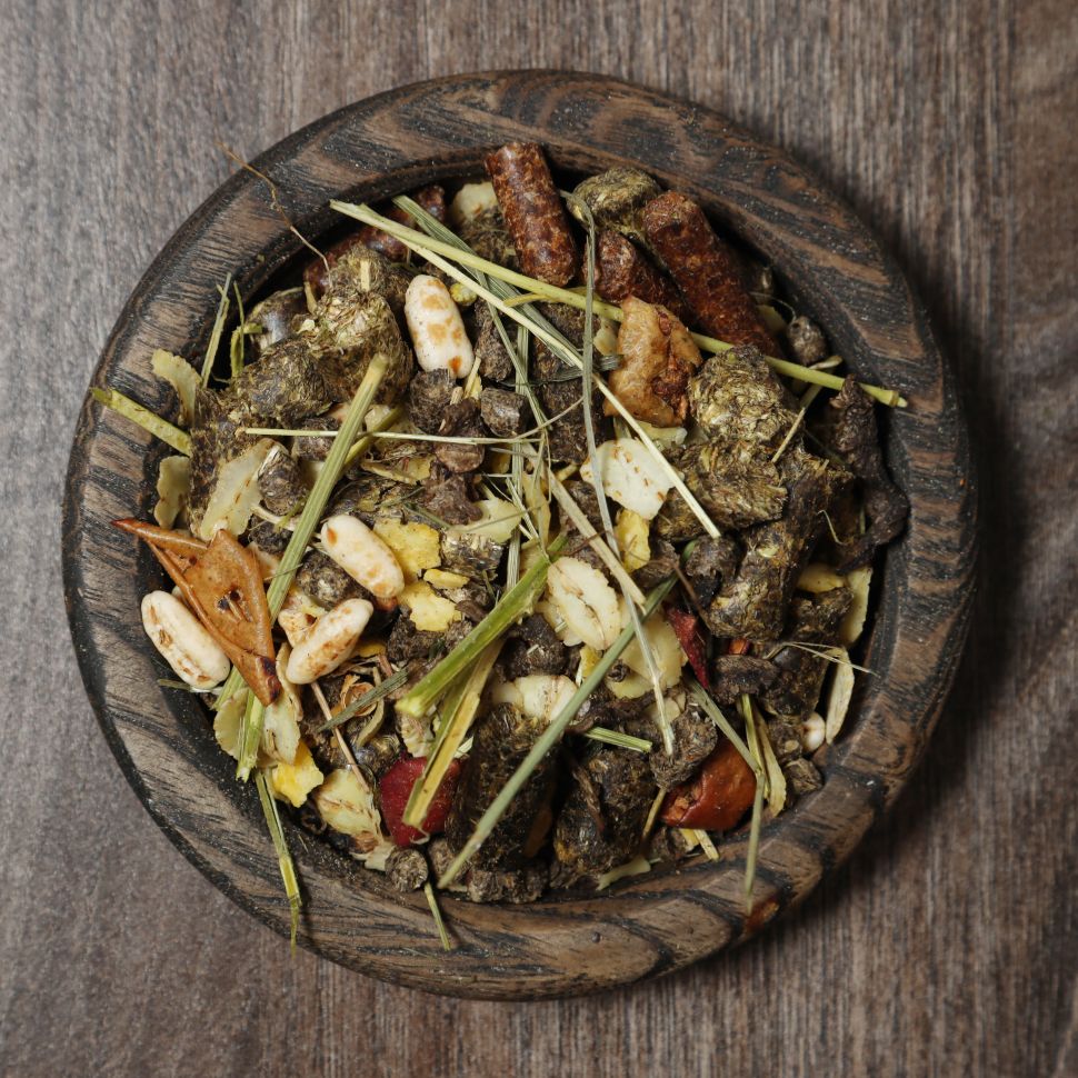 Состав | • хлопья ячменя • хлопья кукурузы • пшеничные отруби гранулированные • свекловичные волокна • паффинг ячменя • яблочные волокна • свекловичная меласса • травяная гранула искусственной сушки • сечка люцерны • дыхательный сбор (крапива, эвкалипт, кориандр, |