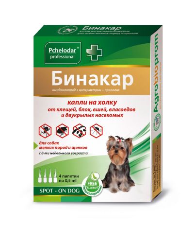 Агробиопром: Бинакар, капли на холку, для мелких собак, 4 пипетки по 0.5 мл