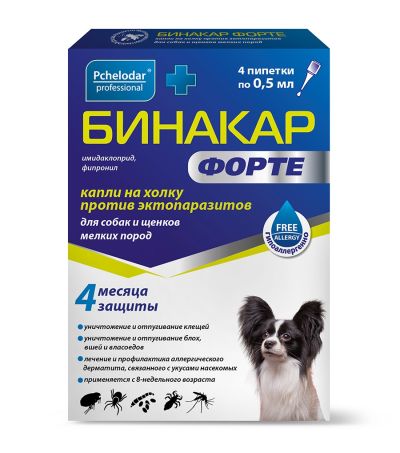 Агробиопром: Бинакар Форте, капли на холку, для собак и щенков мелких пород, ...