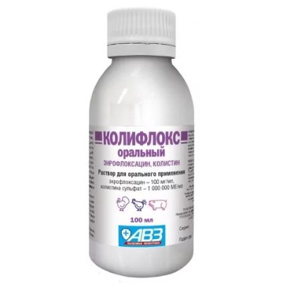 АВЗ: Колифлокс, для птиц и поросят, энрофлоксацин, колистина сульфат, 100 мл