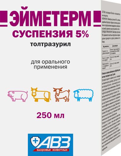 АВЗ: Эйметерм, орально, суспензия 5%, от кокцидиозов у свиней, КРС, МРС, крол...