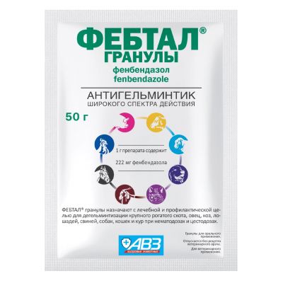 АВЗ: Фебтал гранулы, фенбендазол, антигельминтный препарат, 50 гр