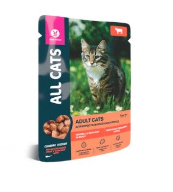 ALL Cats консервированный корм для кошек всех пород с говядиной в соусе, 85 гр.