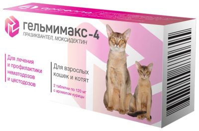 Api-san: Гельмимакс-2 для взрослых кошек и котят, 2 табл. х 60 мг