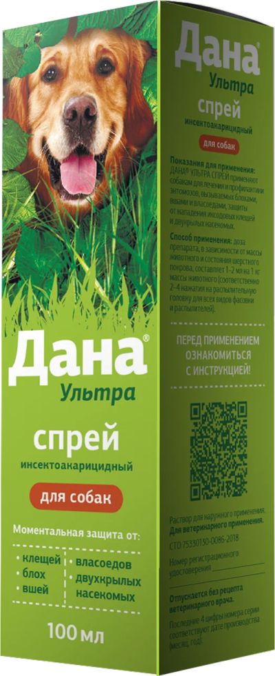 Аpicenna: Дана Ультра, спрей от блох, вшей, клещей, для собак, фипронил, цифл...