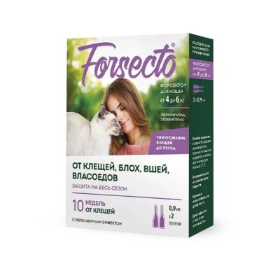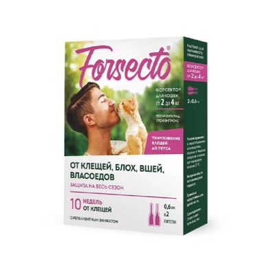 Астрафарм: FORSECTO капли для кошек от 2 до 4 кг, от клещей, блох, вшей, влас...