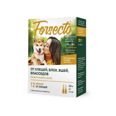 Астрафарм: FORSECTO капли, для собак массой от 10 до 20 кг, от клещей, блох, ...
