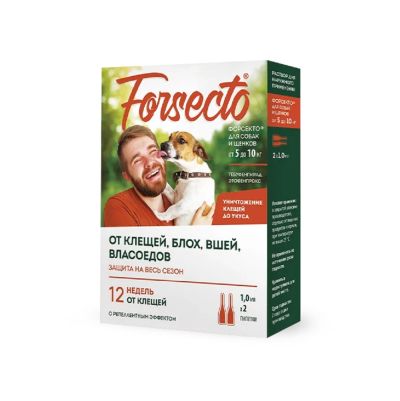 Астрафарм: FORSECTO капли для собак массой от 5 до 10 кг, от клещей, блох, вш...