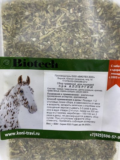 Биотех-Зоо: Сбор при аллергии с фиалкой, солодкой и чередой для лошадей, 0,5 кг