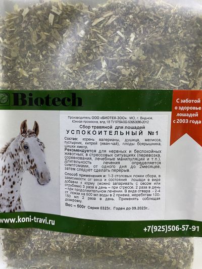 Биотех-Зоо: Сбор успокоительный № 1 с валерианой и пустырником для лошадей, 0...