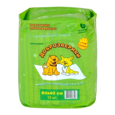 Доброзверики: подстилки впитывающие, для животных с суперабсорбентом, 60х40 с...