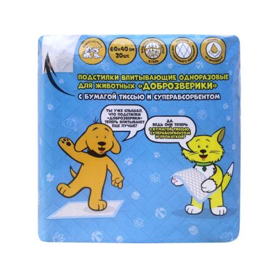 Доброзверики: подстилки впитывающие, для животных, с суперабсорбентом, 60х60 ...