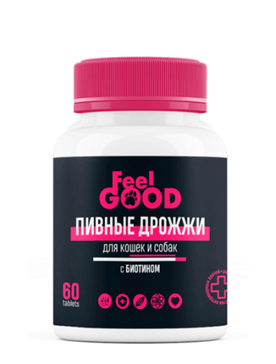 FeelGOOD: Пивные дрожжи с биотином и чесноком, для кошек и собак, 60 табл.