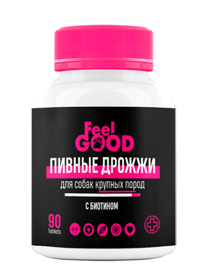 FeelGOOD: Пивные дрожжи с биотином и чесноком, для крупных собак, 90 табл.