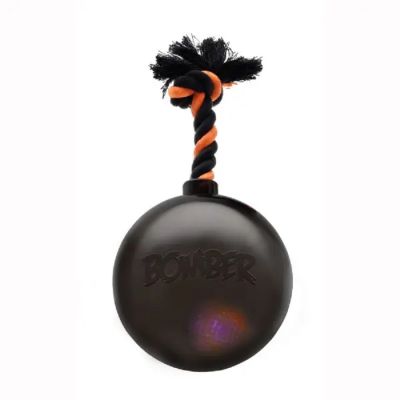 HAGEN: Мяч светящийся на веревке, черный, игрушка для собак, серия Bomber, 17 см