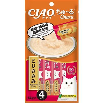 Inaba Ciao Churu пюре из курицы для кошек для здоровья кожи и шерсти 4 шт. х ...
