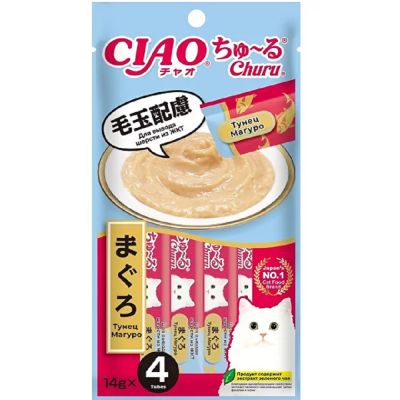 Inaba Ciao Churu пюре из тунца магуро для кошек для вывода шерсти из ЖКТ, 4 ш...