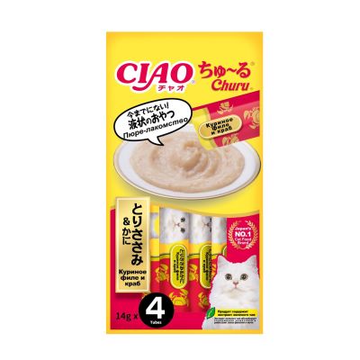 Inaba Ciao Churu пюре из курицы и краба для кошек 4 шт. х 14 гр.