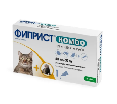 КРКА: Фиприст Комбо раствор от блох, клещей, власоедов и вшей у кошек и хорьк...