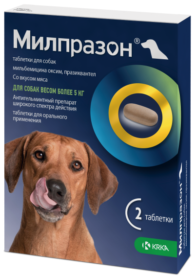 КРКА: Милпразон, антигельминтик, таблетки для кошек более 2 кг, 2 таблетки