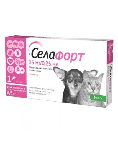 КРКА: Селафорт капли от блох, клещей, глистов для кошек и собак 2,6-7,5 кг, 4...