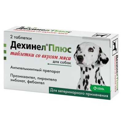KRKA: Дехинел плюс, со вкусом мяса, для собак, антигельминтный препарат, 2 табл.