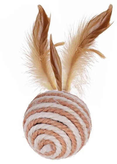 PerseiLine: Игрушка Шарик лофт, сизаль с пером, для кошек, 5 см