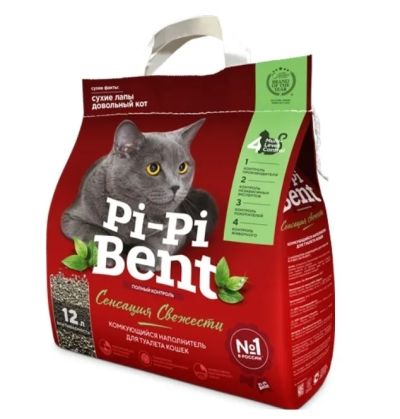 Pi-Pi-Bent Комкующ. наполнитель для кошек"Сенсация свежести", 10 кг...