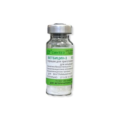 Синтез: Ветбицин-3, антибактериальный порошок, для инъекций, 600 тыс. ед., 10 мл