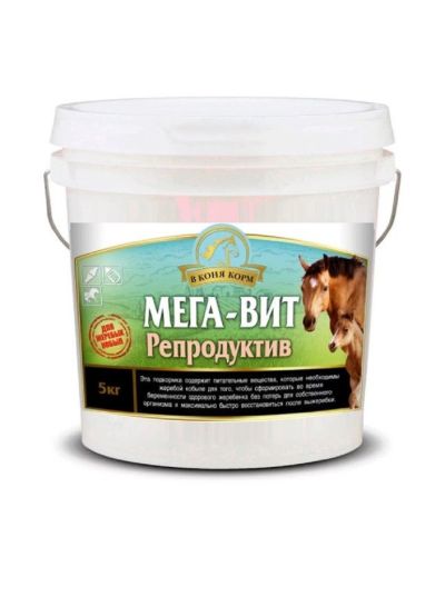 В коня корм: Мега-Вит Репродуктив подкормка для жеребых и лактирующих кобыл 5 кг