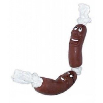 Игрушка для собак "2 сосиски на веревке", хлопок, винил, арт 8002