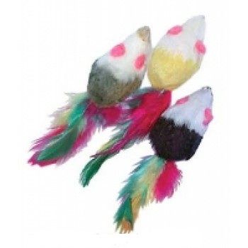 Игрушка для кошек, мех, "Мышь с пером" 5 см, 72 шт.в уп., арт.HWT02...