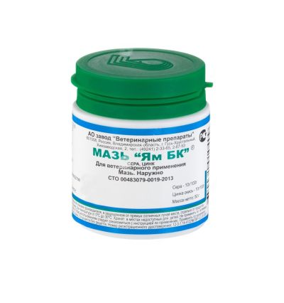 Завод ветеринарные препараты: Мазь ЯМ БК, сера, цинк, наружно, банка, 20 гр