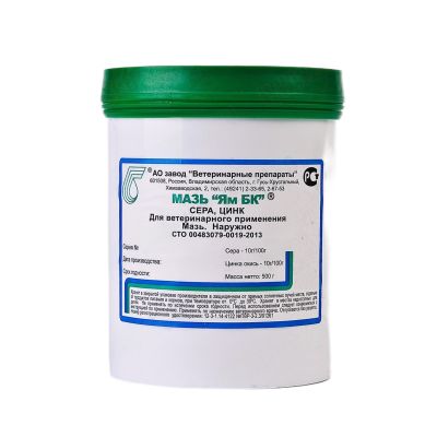 Завод ветеринарные препараты: Мазь ЯМ БК, сера, цинк, наружно, банка, 500 гр
