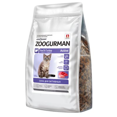 Zoogurman: Active, Говядина и индейка, сухой корм для кошек, 2,5 кг