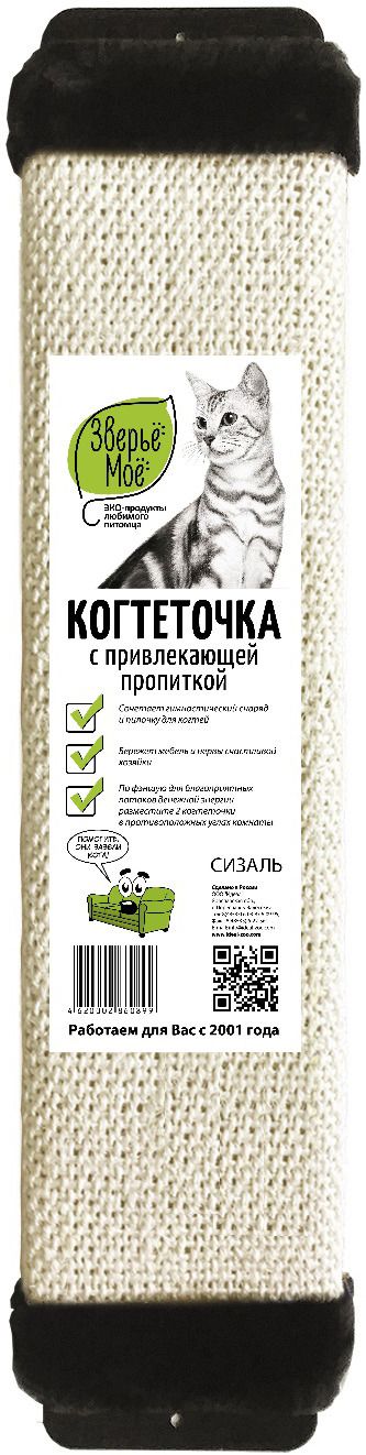Когтеточка Зверье мое С-1 сизаль настенная, размер 60 х 13 х 3 см