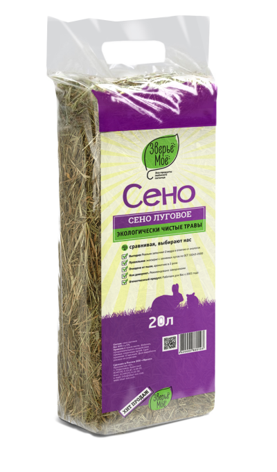Сено луговое "Зверье мое", 20 л., брикет, 600 гр.