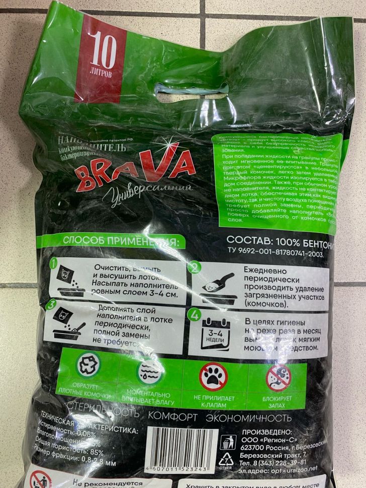 Название модели | Брава комкующийся бактерицидный универсальный наполнитель для кошек, 10 |