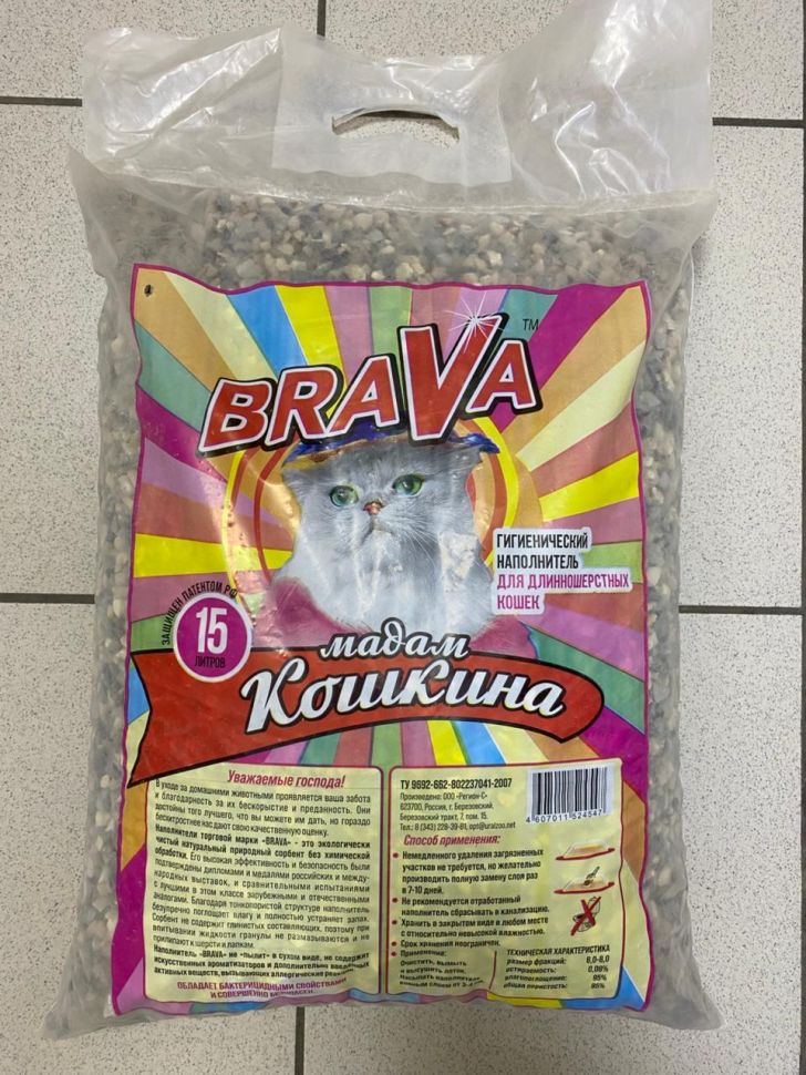 Наполнитель Брава Мадам Кошкина - впитывающий гигиенический наполнитель для длинношерстных кошек.