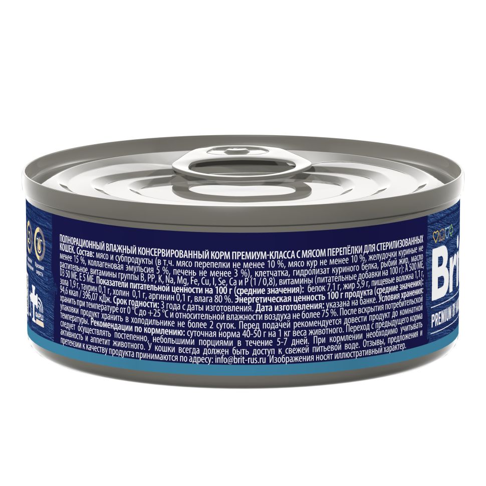 Полнорационный консервированный корм премиум класса с перепёлкой для взрослых стерилизованных кошек.