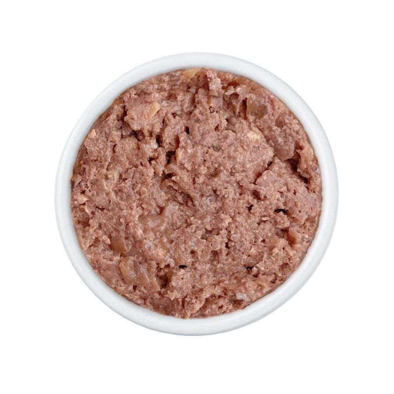 Состав: мясо и субпродукты (в т.ч. говядина не менее 10 %, курица не менее 10 %, сердце не менее 10 %, легкое не менее 10 %, трахея говяжья не менее 5 %, а также печень и говяжья жилка), растительная клетчатка, минералы (кальций 0,4 %, фосфор 0,3 %, калий, магний), витамин А – не менее 500 МЕ, витамин D3 – не менее 50 ME, витамин Е – не менее 5 МЕ.