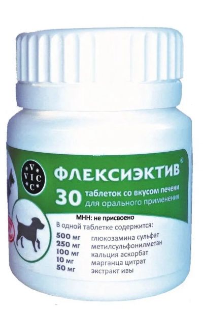 ВИК: Флексиэктив, хондропротектор со вкусом печени для собак, 30 табл.