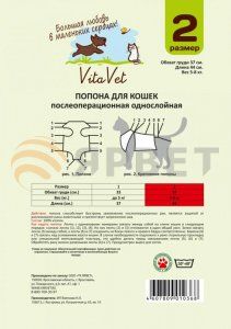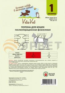 Попона VitaVet послеоперационная №0 для кошки, той-терьера 18-25см (2 шт в у...