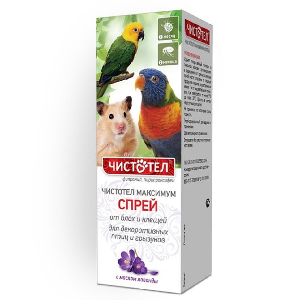 Чистотел Максимум спрей применяют для уничтожения чесоточных клещей, блох, вшей, власоедов, паразитирующих на морских свинках, крысах и других декоративных грызунах, а также пухопероедов (при маллофагозах) и чесоточных клещей (при кнемидокоптозе) декоративных птиц.