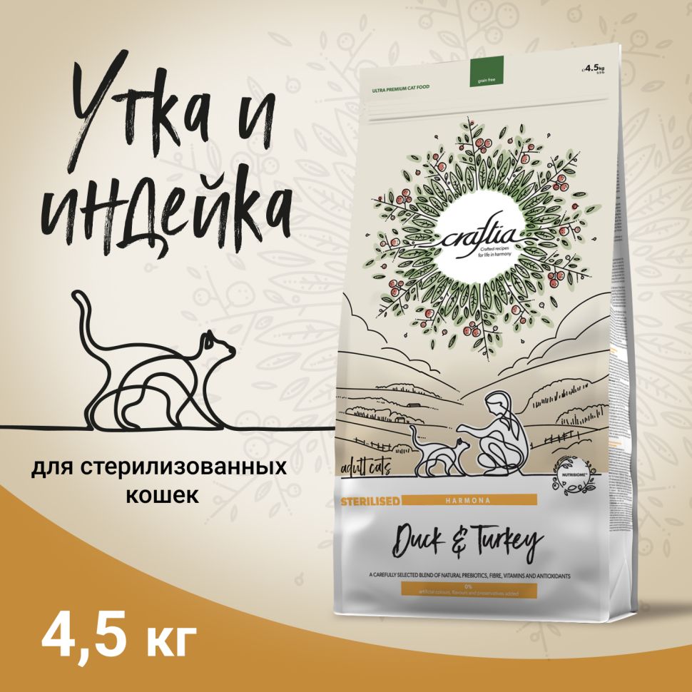 CRAFTIA HARMONA сухой корм для стерилизованных кошек из утки и индейки