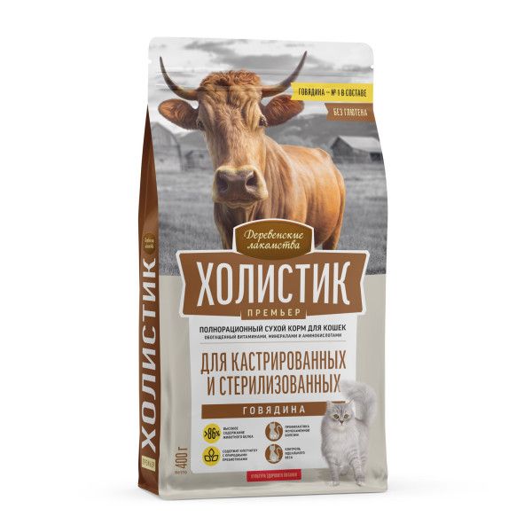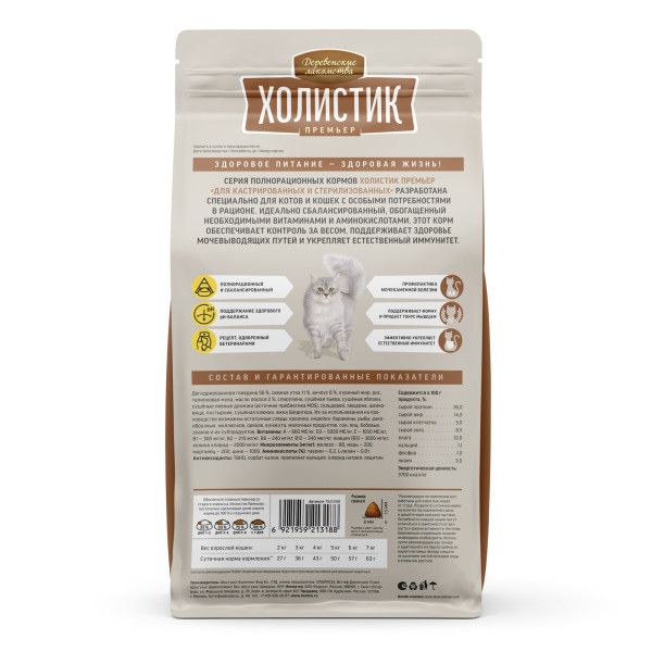 Полнорационный сухой корм «Деревенские лакомства Холистик Премьер для кастрированных и стерилизованных кошек» - рецепт здорового роста и развития!