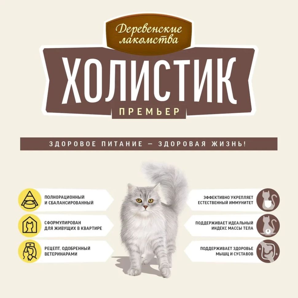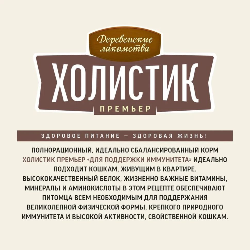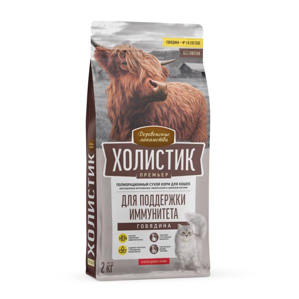 Полнорационный сухой корм Холистик Премьер «Для поддержки иммунитета» идеально подойдёт для кошек, живущих в квартире. Богатый белком отборной говядины, жизненно-важными витаминами, минералами и аминокислотами, этот рецепт обеспечивает питомца всем необходимым для поддержания великолепной физической формы, крепкого природного иммунитета и, свойственной кошкам, высокой активности.